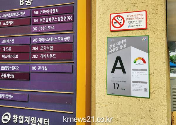 서울 동대문구(구청장 이필형)는 공공건물 온실가스 배출량 관리를 위해, 연면적 1,000㎡ 이상 공공건물 22개소에 ‘건물 에너지 사용량 등급표’를 부착한다고 18일 밝혔다.