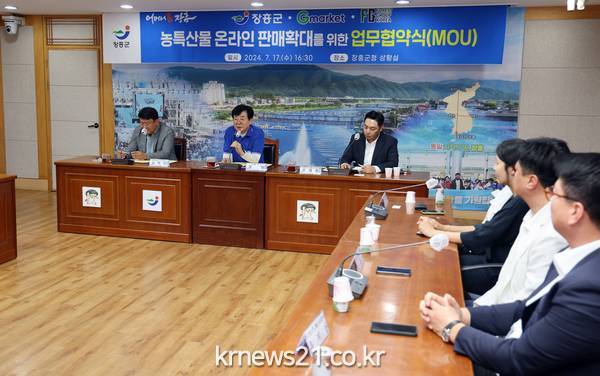 장흥군은 온라인 쇼핑몰 G마켓, 포레스트 그룹 코리아와 농특산물 판매 확대를 위한 업무협약을 체결했다.