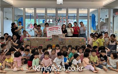 허경화 힐스테이트 명륜 트라디움 어린이집 원장은 “이웃돕기를 실천하는 어린이집이 되고자 아이들과 함께 자발적으로 기부 활동을 하고 있다”며“우리 이웃 모두가 더운 여름을 이겨내고 건강한 여름을 보냈으면 좋겠다”고 말했다.