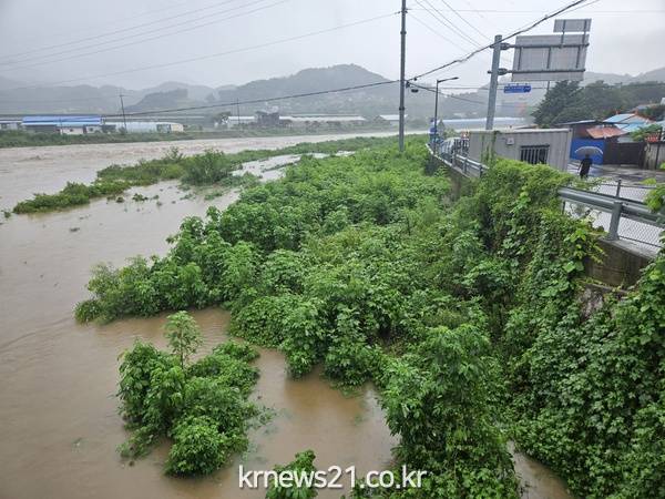 이에 박 부군수는 현장을 방문, 홍수 위험수위 도달 시 인명피해가 발생하지 않도록 선제적 대응을 위해 대보교 사전통제 등을 검토토록 했다. 또 하천수위 상승에 따른 하천시설과 관련된 제방, 수문, 배수펌프장 점검을 지시했다.