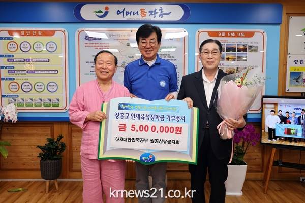 (재)장흥군인재육성장학회(이사장 김성)는 18일 (사)대한민국공무원 공상유공자회(회장 김순재)에서 500만원의 장학금을 기부했다고 밝혔다.