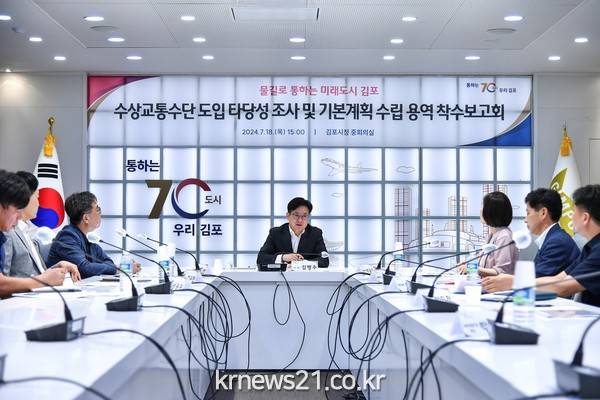 김포시는 18일 김포시청에서 ‘수상교통수단 도입 타당성 조사 및 기본계획 수립 용역’ 착수보고회를 개최했다고 밝혔다.