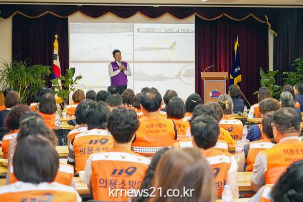17일 동대문소방서 4층 강당에서 ‘상상력은 현장에서 나온다, 재난 상상력’이라는 주제로 관내 의용소방대원 100여 명이 참석한 가운데 이필형 동대문구청장의 특별강연이 열렸다.