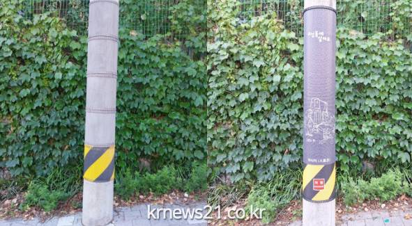 구는 관내 가로등·전신주 등 공공시설물이 불법 전단지와 벽보로 오염되는 문제를 해결하기 위해 지난 4월 불법광고물 부착방지판 설치에 나섰다.