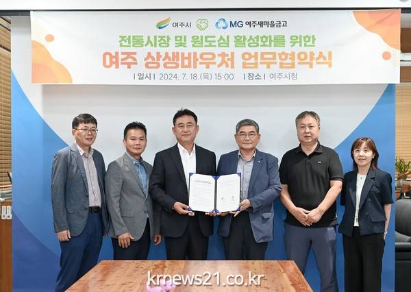 여주시는 지난 18일 여주새마을금고(이사장 김동학)와 전통시장 및 원도심 상권 활성화를 위한 ‘여주 상생 바우처 운영’ 업무 협약식을 가졌다고 밝혔다.