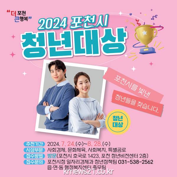 포천시(시장 백영현)는 오는 8월 28일까지 2024년 포천 청년대상 후보자를 추천받는다.