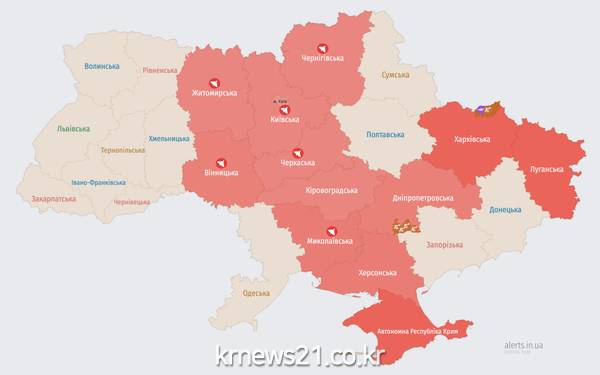 "UAV는 체르카시와 빈니차 지역의 경계에 있으며 북서쪽으로 향하고 있습니다. UAV는 Mykolaiv Oblast의 북쪽에 있고 코스는 북서쪽입니다."라고 메시지는 말하고 있다.