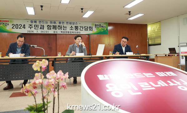 이상일 용인특례시장은 24일 처인구 백암면 행정복지센터 대회의실에서 주민 소통간담회를 열고 지난 2년 동안의 시의 변화와 발전상을 소개하고 지역 현안을 논의했다.
