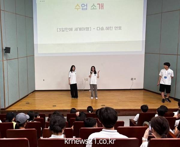캠프 프로그램은 ▲정규 수업(창의과학, 심리학 수업, 인공지능 등 5개 과정) ▲레크리에이션 활동 ▲만들기 활동(풍차, 과자집, 꽃밭 등) ▲방과 후 프로그램(분야별 전문가·졸업생 등 명사초청 특강)으로 구성됐다.