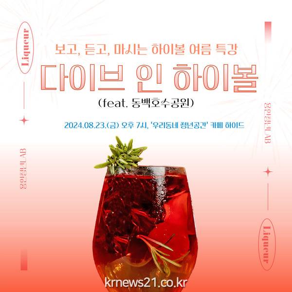 이와 함께 시는 8월 23일 기흥구 동백 호수공원에 있는 카페에서 ‘우리동네 청년공간’ 지원사업의 일환으로 ‘다이브 인 하이볼’ 프로그램을 운영한다.