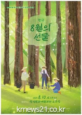 장성군 지역예술단체가 독림가 춘원 임종국 선생의 이야기를 창극으로 펼쳐낸다. 군에 따르면, 주말인 10일 오후 4시 장성문화예술회관 소공연장에서 사단법인 청강창극단의 창작 창극 ‘8월의 선물’ 무대가 막을 올린다. ‘창극’은 창을 바탕으로 한 우리나라 고유의 음악극이다.