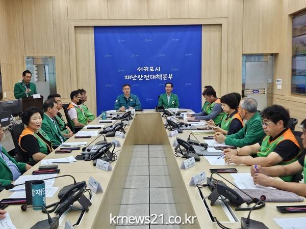 서귀포시·자율방재단은 지난 9일 여름철 자연재난(폭염, 태풍, 집중호우) 신속 대응을 위한 민관협력체계 강화회의를 개최하여 각종 재난 발생 시 신속한 합동 대응체계를 가동하기로 하였다.