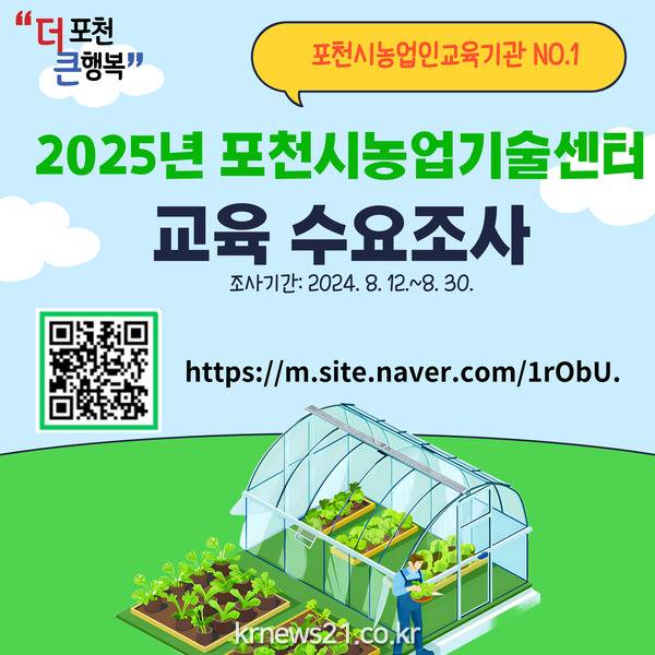 포천시(시장 백영현)는 오는 30일까지 포천시민을 대상으로 ‘2025년 포천시 농업기술센터 농업인 교육 수요조사’를 실시한다.
