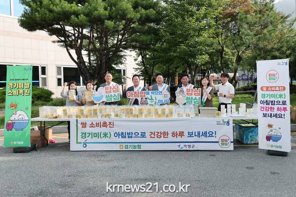 군과 농협은 캠페인 협약 첫 행사로 이날 군청 입구 등에서 출근길 직원 등에게 컵밥(주먹밥)과 식혜 500인분을 나눠 줬다. 캠페인에는 서태원 군수를 비롯해 김경수 군의회 의장, 송명규 농협 가평군지부장, 장동규 가평군농협 조합장 등이 참석해 “아침밥 먹기를 통해 우리쌀 소비를 확대해 나가자”고 당부했다.