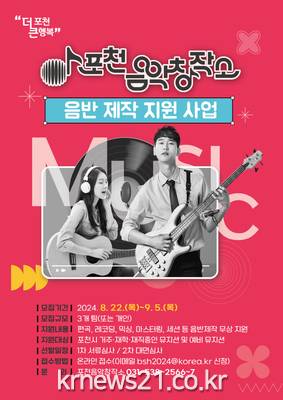 한편, 사업에 대한 자세한 내용은 포천시청 누리집 또는 포천음악창작소 누리집에서 확인할 수 있으며, 자세한 문의는 포천음악창작소(☎031-538-2566~7)로 전화하면 된다.