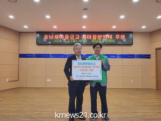 서구 송남새마을금고(이사장 임완수)는 8월 6일, 주민 자율방역단 운영을 위한 지원금 70만 원을 남부민2동 새마을지도자협의회(회장 정성태)에 전달하였다.