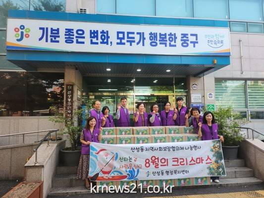 한현희 위원장은 “더운 날씨에 힘드신 이웃들에게 이번 8월의 크리스마스 선물이 작게나마 도움이 되길 바란다.”라며“앞으로도 어려운 이웃을 위한 뜻깊은 나눔행사를 이어가겠다.”라고 말했다.