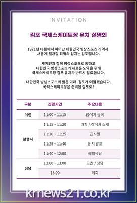 서부권 빙상스포츠 벨트의 주역으로 떠오른 김포시가 오는 29일 한국프레스센터 20층 프레스클럽에서 국제스케이트장 유치 계획을 발표한다. 김포시는 유치 설명회를 통해 신규 국제스케이트장 부지를 최초 공개하고, 김포시 유치 경쟁력과 당위성에 대해 설명할 계획이다.