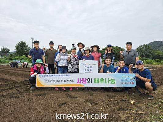 가평군 조종면 이장협의회와 주민자치회는 27일 조종면 신하리 유휴농지에서 배추심기 봉사활동을 진행했다.