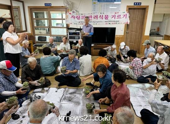 장흥군여성친화도시모니터단(단장 채은아)은 27일 부산면 수성당에서 경로당 어르신 40여명을 모시고 ‘사랑의 반려식물 기르기’행사를 진행했다.