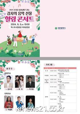 대전시는 9월 3일 엑스포시민광장 야외공연장에서 5개 구 2,600여 명의 대전시 전체 통장들이 참석하는 ‛2024 감사의 음악 선물, 힐링 콘서트'를 개최한다.