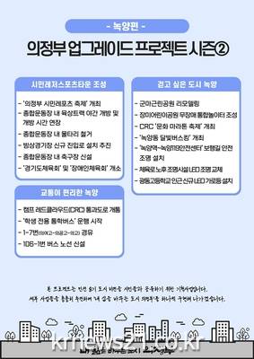 의정부시(시장 김동근)는 시민들의 삶의 환경을 한 단계 개선하기 위한 ‘의정부 업그레이드 프로젝트’의 시즌2 녹양편을 30일 발표했다.