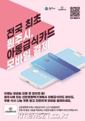 원주시는 아동급식카드를 이용하는 아동에게 무료로 식사를 제공하는 선한영향력 가게 매장에서 아동이 낙인감 없이 무료 식사 및 서비스를 제공받을 수 있도록 ‘나비얌’ 앱을 전국 최초로 도입하고 9월부터 12월까지 시범운영에 나선다.