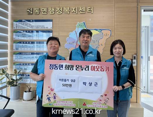 지난 8월 30일 점동면 주민 박상근 씨가 점동면행정복지센터에 방문하여 이웃돕기 성금 50만원을 기탁하며 지역사회에 따뜻한 감동을 전했다.