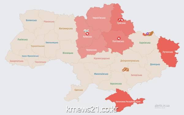 현재 적군 무인기는 체르니히프(Chernihiv)와 폴타바(Poltava) 지역 경계에서 서쪽 방향으로 키예프 지역을 향해 향하고 있다.