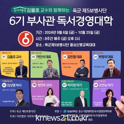 부사관 독서경영대학 6기는 9월 6일부터 10월 25일까지 총 8차시에 걸쳐 진행될 예정이다.