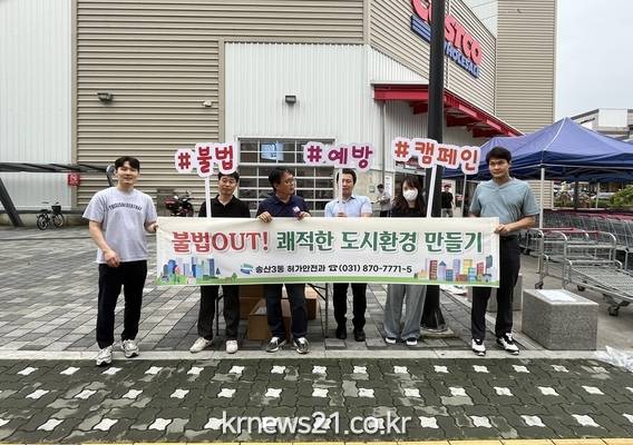 의정부시 송산3동행정복지센터(권역국장 이영재)는 9월 12일 의정부 코스트코 앞 사거리 일대에서 ‘한가위 맞이 불법행위 근절 운동(캠페인)’을 전개했다.