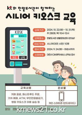 한밭도서관은 10월 22일부터‘시니어 키오스크 이용교육’을 실시한다.