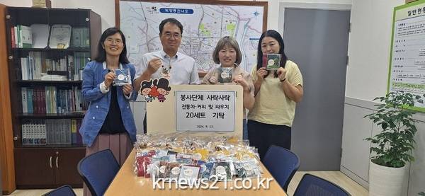 의정부시 녹양동주민센터(동장 최광규)는 재능봉사단체 사락사락(대표 안효숙)이 어려운 이웃을 위한 전통차‧커피 묶음(세트) 및 파우치 20묶음(세트)을 기탁했다고 19일 밝혔다.