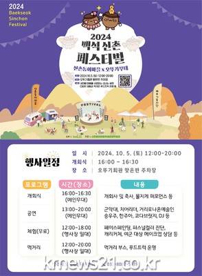 양주시(시장 강수현)가 오는 10월 5일 백석읍 방성리 일대(방성리 153-1)에서 도시재생 마을축제 ‘2024 백석 신촌 페스티벌’을 개최한다고 밝혔다.