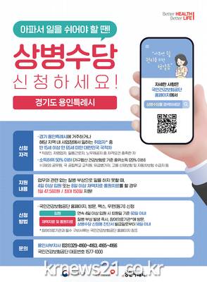 용인특례시(시장 이상일)는 2023년 7월부터 운영 중인 상병수당 2단계 시범사업 지원 범위가 10월 1일부터 확대된다고 27일 밝혔다.