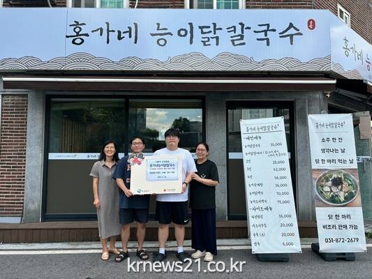 의정부시 녹양동주민센터(동장 최광규)는 9월 25일 온정돌봄 서포터즈 ‘홍가네능이닭칼국수(대표 정명기)’가 맞춤형 정기 후원을 실시했다고 밝혔다.