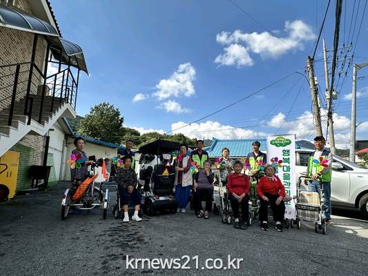 가평군 조종면 행복마을관리소는 지난 26일 보행보조기구를 사용하는 어르신들을 대상으로 ‘안전마실 바람개비’ 사업를 진행했다. 이번 행사는 어르신들의 이동중 교통 안전을 도모하기 위해 마련했다.