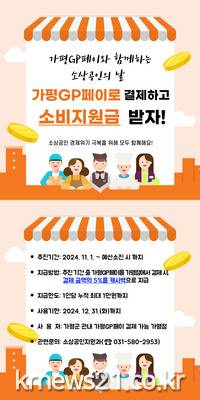 가평군(군수 서태원)은 소상공인의 날(11월 5일)을 기념해 지역화폐인 가평GP페이 소비지원금을 오는 11월 1일부터 지원한다고 밝혔다.