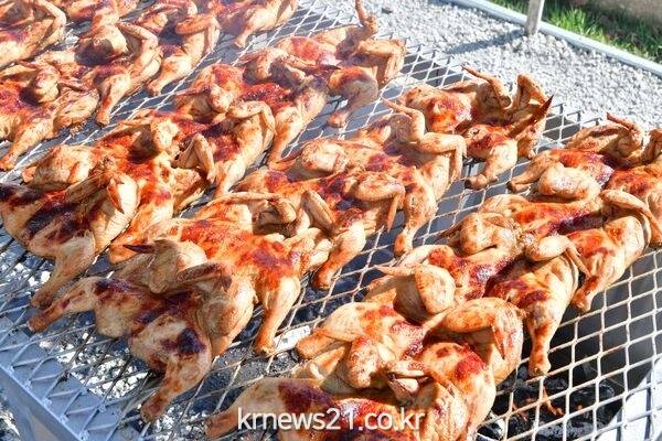 장성지역 업체에서 공수한 양질의 닭을 여러 단계에 걸쳐 장작불로 정성스레 굽는 것이 첫 번째 포인트다. 훈연을 통해 자연스럽게 ‘불맛’이 스며드는 데다 기름기까지 쏙 빠져 담백하다. 여기에 특제 새싹삼 파우더를 입혀 고급스런 풍미를 더했다.화룡점정은 ‘새싹삼 레몬소스’다. 새콤달콤한 맛과 새싹삼 특유의 향이 훈제 치킨 바비큐와 절묘한 조화를 이뤄 폭발적인 반응을 얻고 있다.황룡강 가을꽃축제 현장에서 만난 김모 씨(담양군)는 “2시간 줄 서서 먹었는데 기다린 시간이 아깝지 않았다”며 만족감을 표했다.이틀 연속 황룡강을 찾았다는 박모 씨(광주)는 “첫날 소스가 일찌감치 떨어지는 바람에 치킨만 가져갔는데도 간이 맞아서 잘 먹었다”며 “오늘은 ‘소스 맛’으로 또 한 번 즐기려 한다”고 말했다.‘장성 새싹삼 치킨 바비큐’는 장성군과 더본외식산업개발원, 지역 외식업체, 생산자단체, 지역농협, 장성하이텍고등학교 식품영양학과, 호남대학교 외식조리학과가 공동 참여하고 있는 ‘장성 특화음식 프로젝트’의 일환으로 개발됐다.장성군은 지난 2023년 ㈜더본코리아와 업무협약을 체결한 이래 장성산 농특산물을 이용한 상무대 상생급식 메뉴 30여 종을 개발하는 등 지역 특화음식 활성화를 위해 적극적인 협업을 이어오고 있다.김한종 군수는 “지역 농업인과 외식업 종사자, 외식업 창업을 꿈꾸는 청년들이 장성과 함께 성장할 수 있도록 ‘미식도시’ 완성을 향한 정진을 멈추지 않겠다”면서 “장성 황룡강 가을꽃축제를 많이 찾아 주셔서 다양하게 준비된 지역 먹거리들을 즐겨 주시기 바란다”고 당부했다.‘오색연화’를 주제로 지난 5일 개막식을 가진 장성 황룡강 가을꽃축제는 일요일인 13일까지 열린다.