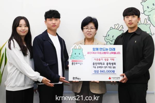 용인특례시(시장 이상일)는 17일 용인대학교 총학생회에서 이웃돕기 성금 84만 5000원을 기탁했다고 18일 밝혔다.