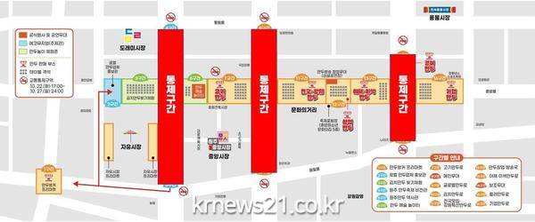 □ 통제 구간은 ▲중앙시장 및 자유시장 일원(원일로 114~중앙시장길 32) ▲KB국민은행 사거리(중평길 2~평원로 45) ▲제일약국 사거리(원일로 70~감영길 51) 이다.