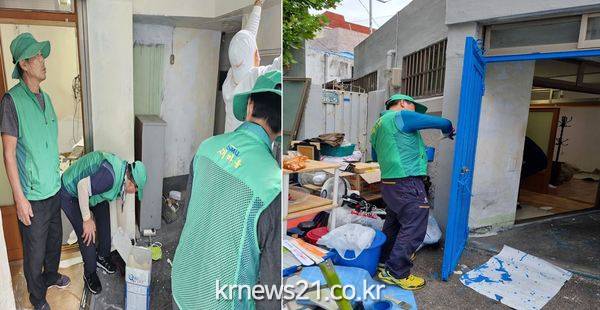 서구 서대신1동 새마을지도자협의회(회장 곽문갑)는 10월 6일 취약계층의 주택을 방문하여 벽지 도배, 장판 시공, 현관문 페인트 작업 등 집수리 사업을 하였다.