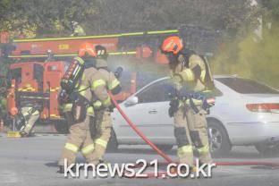 올해는 최근 사회적으로 문제가 되고 있는 전기차 화재사고를 가정했다. 어린이회관 지하 주차장에서 충전중인 전기차에서 불이 나, 건물 2층 천장이 붕괴되면서 안에 있던 주민 30명이 사망하거나 다친 상황을 설정했다.