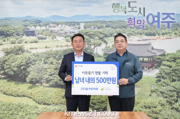 류호진 대표는 “여주시와의 좋은 인연으로 감사의 마음을 담아, 어려운 이웃에게 작지만 도움이 되고자 한다.”고 말했다.
