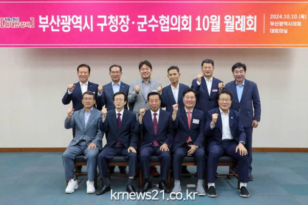 부산광역시 구청장·군수협의회 월례회가 10월 10일 부산시의회 대회의실에서 열렸다. 이날 회의에는 부산광역시 구청장·군수협의회 회장인 최진봉 중구청장과 사무총장이자 개최구인 김형찬 강서구청장 등을 비롯, 모두 12명의 단체장이 참석했다.