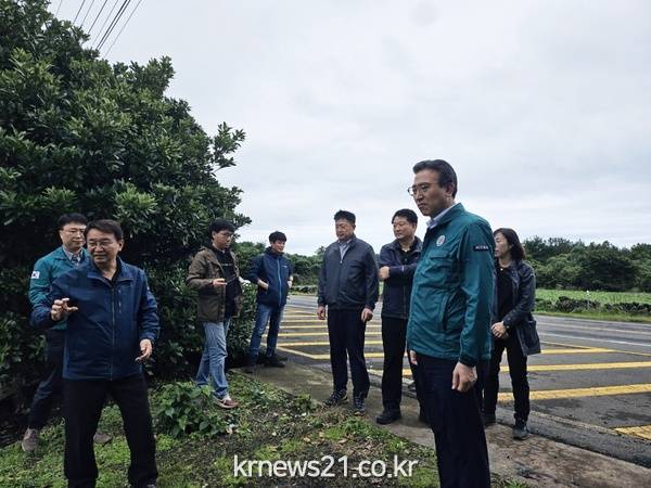 폭우가 그친 다음날 오전(11.2.), 오순문 시장은 강수량이 가장 많았던 동부지역을 농업 관련부서와 방문해 월동작물과 감귤 등 1차 산업 피해현장의 의견을 청취하였다. 이와 더불어 현창훈 부시장은 서부지역 상습 침수피해 우려지역을 안전·건설 관련부서와 동행하여 파악하였다.