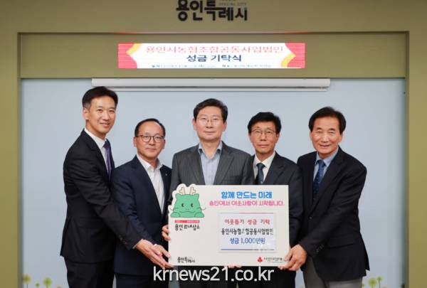 용인특례시(시장 이상일)는 지역 내 학교에 친환경 우수농산물을 공급하는 용인시농협조합공동사업법인이 성금 1000만원을 기탁했다고 13일 밝혔다.