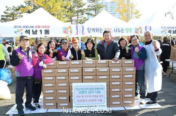 석남1동 지역사회보장협의체(공동위원장 성윤주, 민간위원장 양재은)는 13일 관내 저소득 취약계층 60가구에 김장김치(5kg)를 지원하는 ‘사랑의 김장김치’ 전달식을 가졌다.