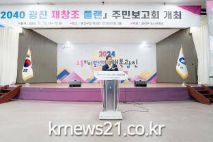 광진구(구청장 김경호)가 13일, 광진구청 대강당에서 ‘2040 광진 재창조 플랜 선포 주민보고회’를 개최했다.