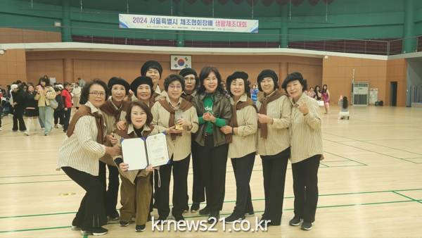 지난 9일, 자양제4동(동장 박찬구) 자치회관 ‘에이지락’ 줌바댄스팀이 동대문구 체육관에서 열린 ‘2024년 서울특별시 체조협회장배 생활체조대회’에 참여해 어르신부 1위를 수상했다.